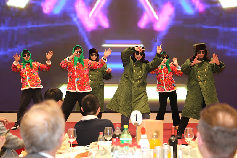 蒙眼喝可乐、光盘拔河、指压板跳绳等创意游戏,让年会现场充满了欢声笑语。参与者和观众都沉浸其中。